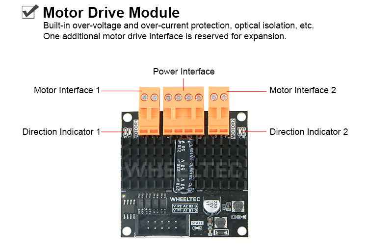 * Core Board Protection Features: Reverse polarity protection, over-current protection, short-circuit protection, motor stall protection, and electrostatic protection