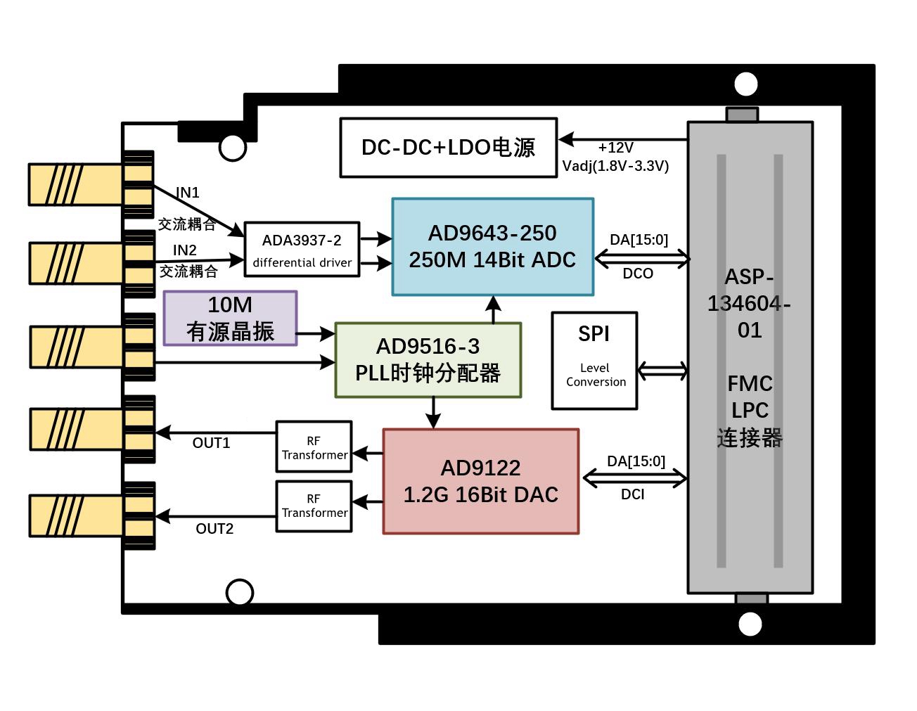 FMCADDA-9643-9122 2-Channel 14Bit 250M ADC + 2-Channel 16Bit 1.2G DAC High Speed FMC Sub Card Acquisition Card