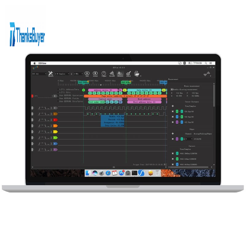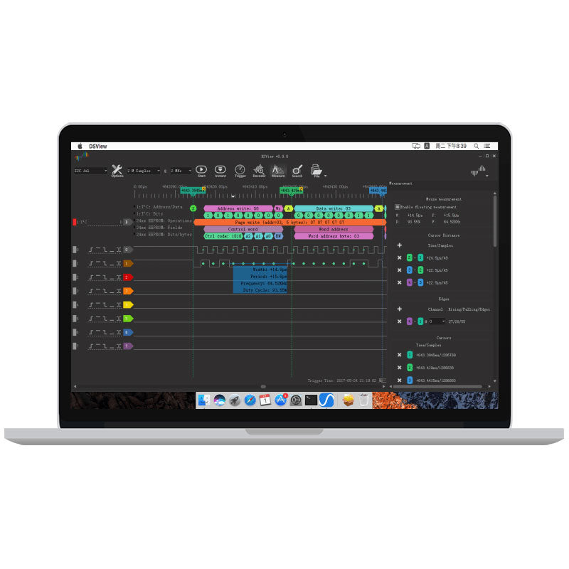 4.Support nearly a hundred kinds of protocol analysis: DSLogic not only supports common protocol analysis, directly displays the content of the protocol data, but also supports multi-layer protocol stacking, making the data display more intuitive and easy to understand. Directly display the EEPROM Page read and write content. Supports nearly a hundred protocols of the open source protocol library. Support specific protocol content trigger. For example, sampling is triggered when specific data appears in the I2C data stream. Support protocol analysis content export text file. Support specific protocol content search