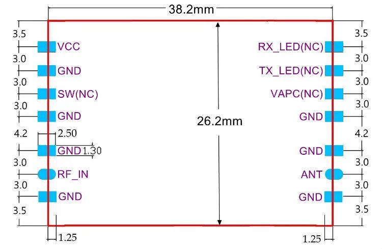 - Due to the maximum transmission gain of the module being around 11dB, in order for the actual output power of the module to reach its maximum value, the output power of the front-end device must be sufficient. For example, in order to achieve an actual output power of 34.5dBm at a supply voltage of 6.0V, the output power of the front-end device must reach 13.5dBm (23.5+11=34.5). If the output power of the front-end device is only 10dBm, even if the operating voltage is 6.0V, the actual output of the module can only reach 21dBm, not 34.5dBm. Please be aware of this.