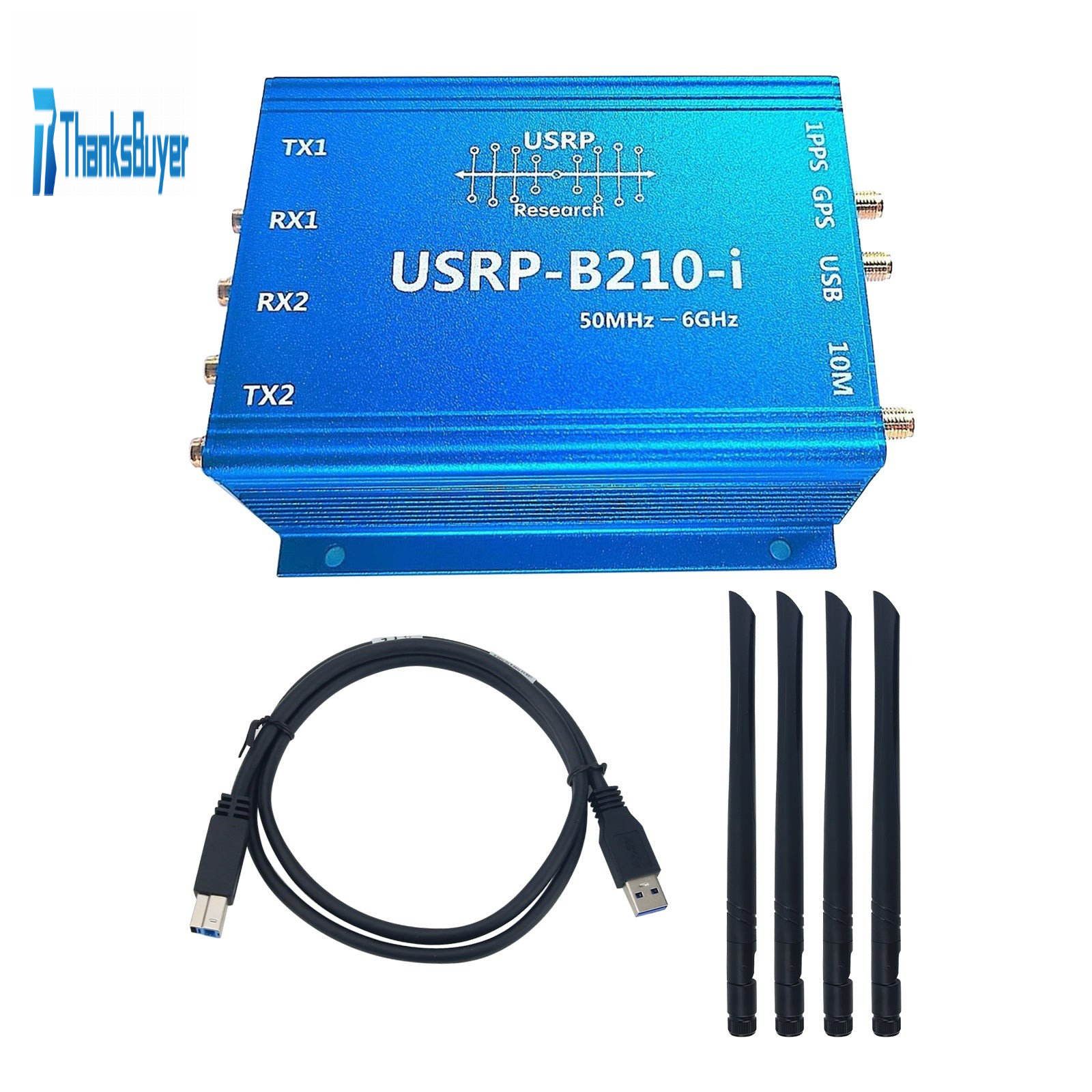 - USRP B210 is a fully integrated single board software defined radio platform with frequency coverage ranging from 50MHz to 6GHz. Designed for low-cost experiments, it combines a fully integrated direct frequency conversion transceiver, providing real-time bandwidth of up to 56MHz, an open and reprogrammable Spartan6 FPGA, and a fast and convenient bus powered ultra fast USB 3.0 connection. Comprehensive support for UHD (USRP Hardware Driver) software allows you to immediately start developing using for GNURadio, creating your own GSM/LTE base station prototype using for OpenBTS and OpenAirInterface, and seamlessly transitioning code from B210 to a higher performance USRP platform. The use of B210 can achieve a wide range of applications, including broadcasting, mobile phones, GPS, WiFi, ISM FM, TV signals, and so on. Users can quickly develop some radios using GnuRadio or participate in open-source software radio projects. Based on UHD support, by updating the USRP system, users are allowed to reuse existing designs, such as some open-source frameworks, for HDSDR, and Openbts. Here are some applications that can be implemented using B210.
