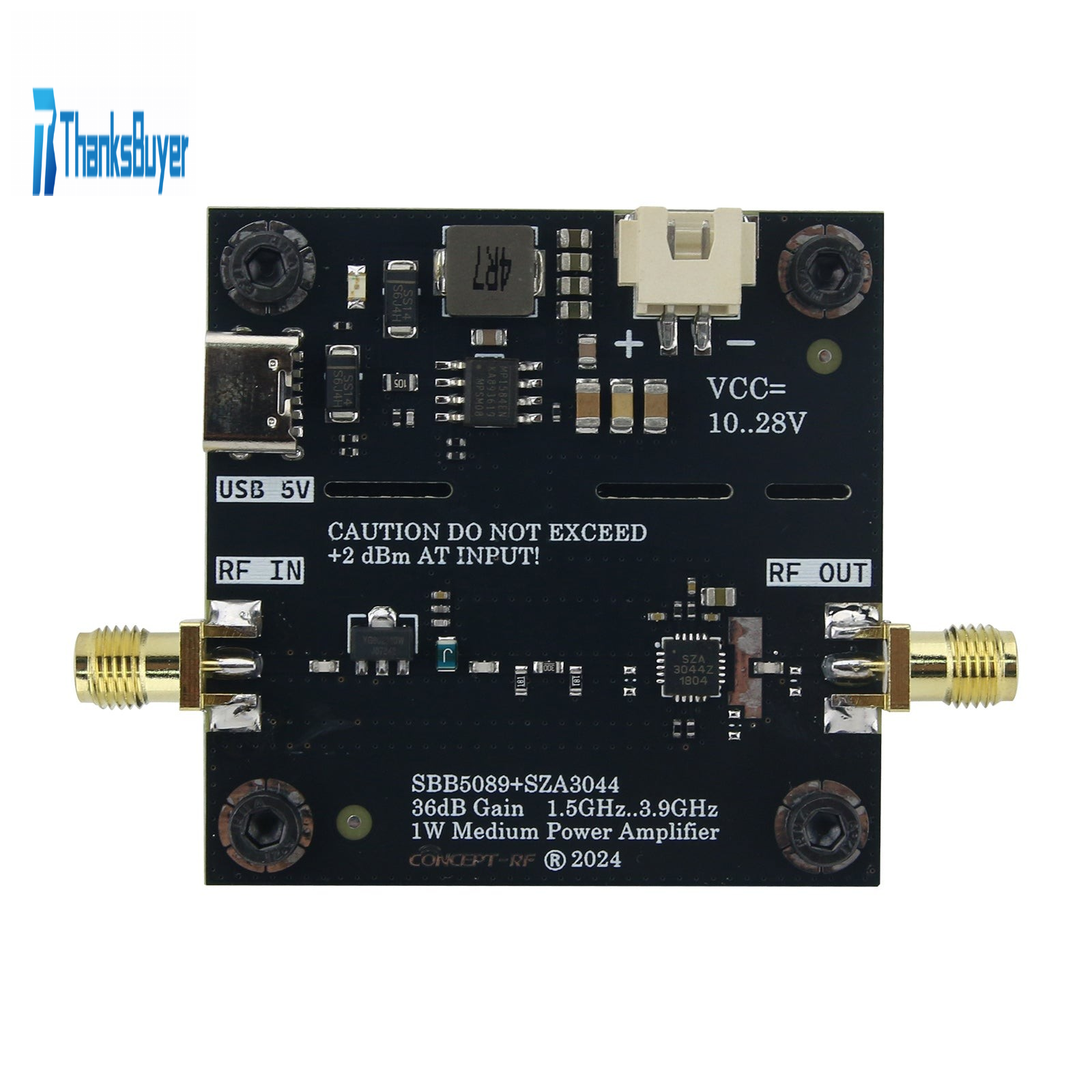 SBB5089 + SZA3044 1.5-3.9GHz 36dB 1W RF Power Amplifier Module for GPS/WiFi/Zigbee/EMC Testing