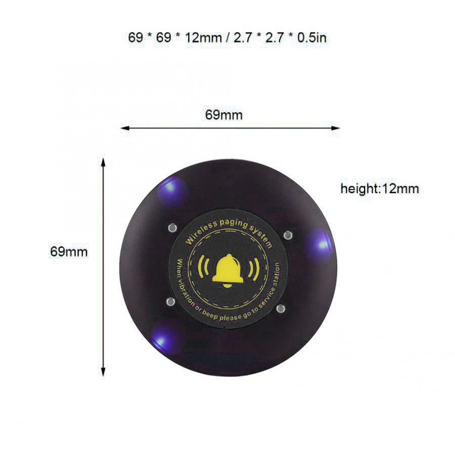 - Function: charge only, low power prompt, online search, vibration, sound, light rotation, free to switch prompts, maximum support 999 pagers