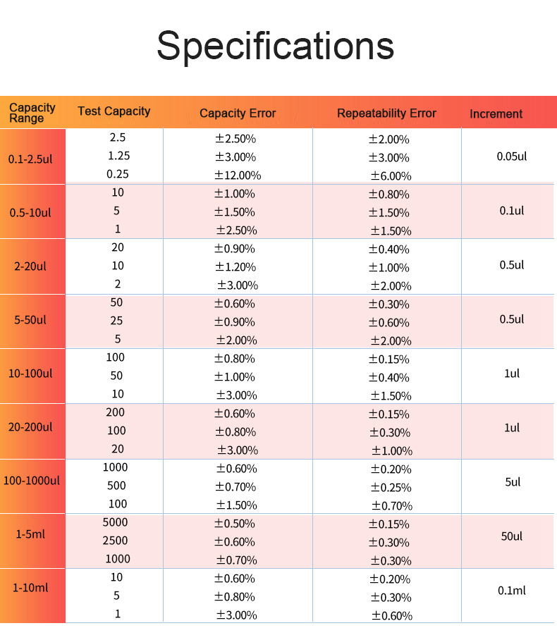 0.1-2.5ul Micropipette Lab Pipette Adjustable Volume With Pipette Tips Large Digital Display Window