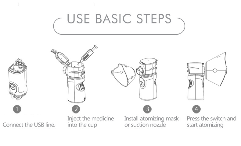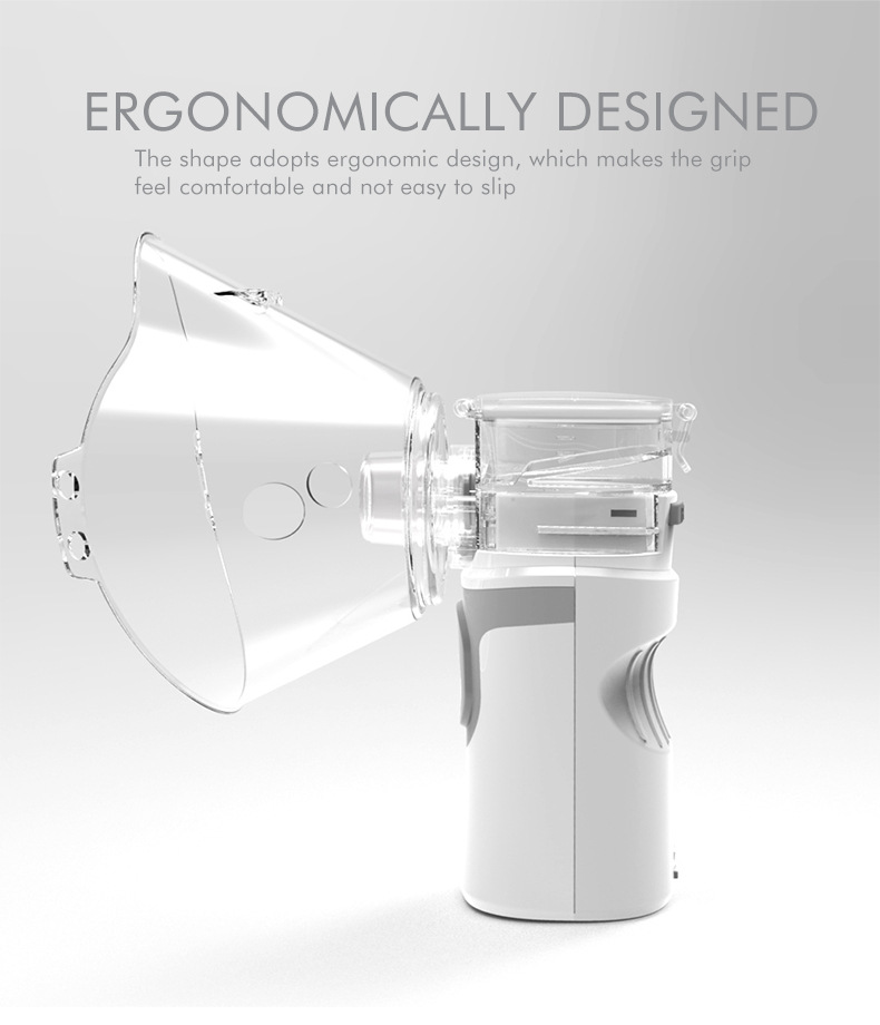 This is a hand-held household atomizing device, featuring lightweight and portable to carry and use. It works silently with fine particles, heavy fog and less residue. It is easy to operate. It is suitable for all ages, especially for children and senior citizens. Compared with other atomizers, its atomized particles are as low as 3.7μm. It is designed with automatic shutdown function. It is tailor-made for European and American people's hand. You can have a try.