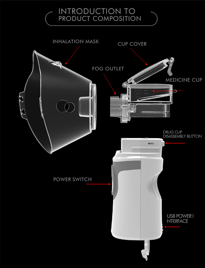 - 2 Atomization Modes: Mask atomization (divided into human and child masks) and mouthpiece atomization.