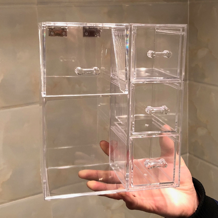 - Multifunctional: The large compartment on the left is for holding makeup brushes. Three drawers on the right are for holding other cosmetic stuff such as cotton swabs, cotton pads
