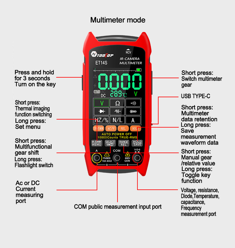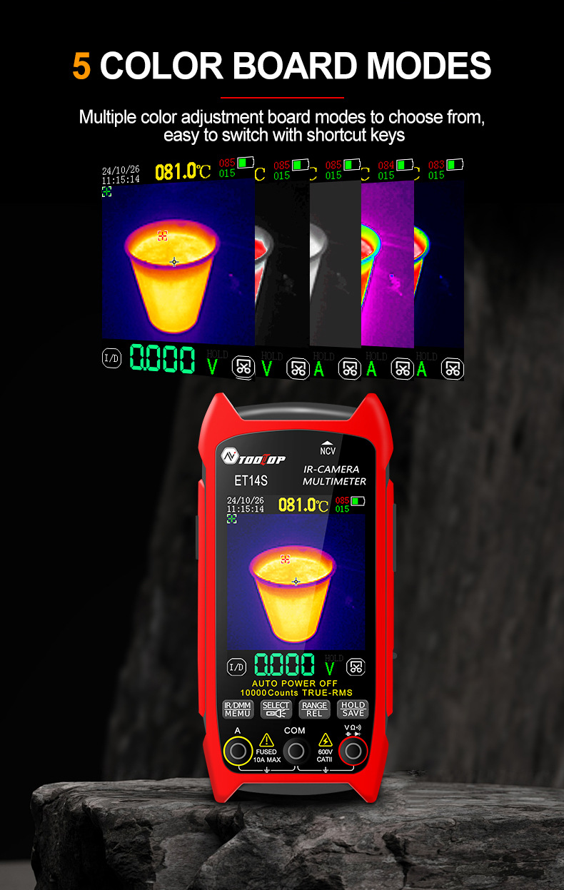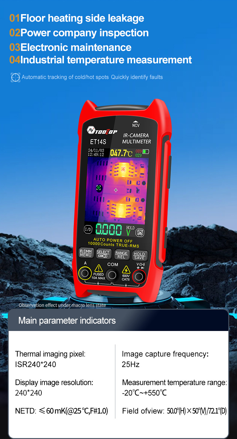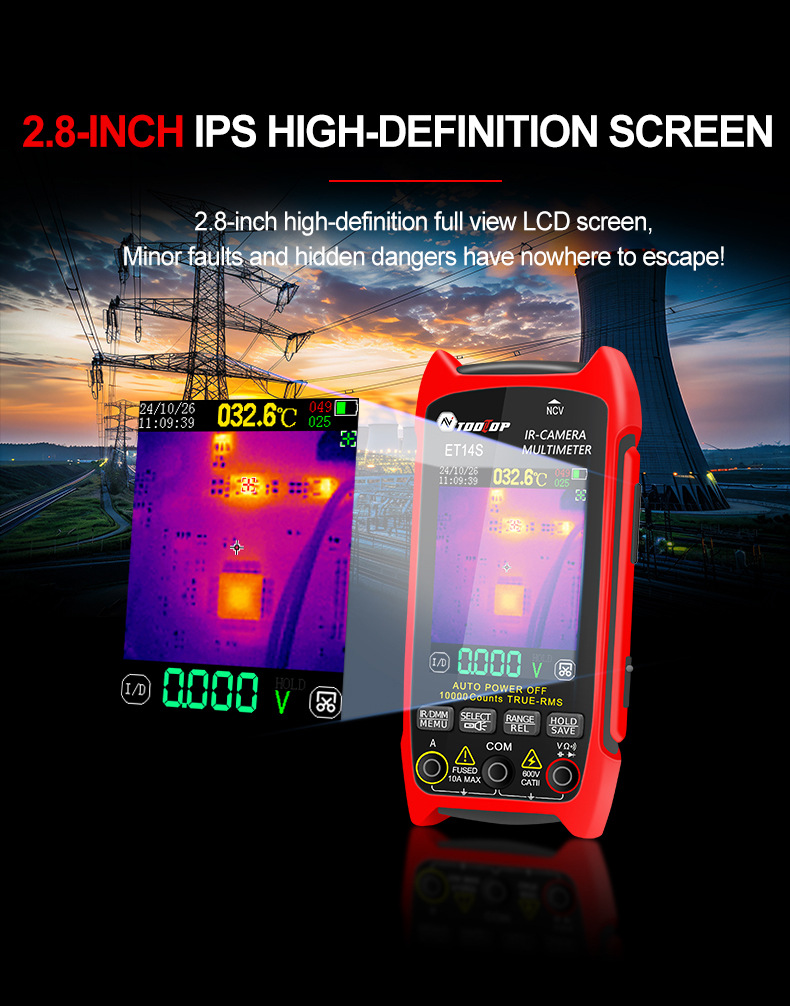 TOOLTOP ET14S 240x240 Thermal Imaging Multimeter with 2.8" IPS LCD for 10A Current Measurement + Optional Macro Lens