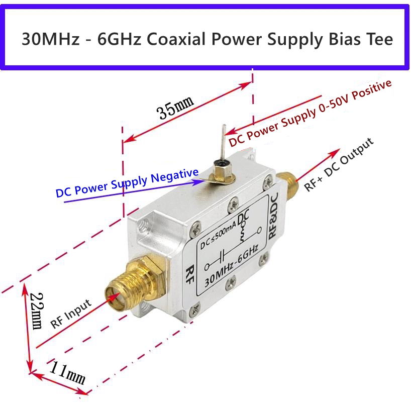 0-50V Self Welding DC Power Supply 30MHz-6GHz RF Isolator High Quality Coaxial Bias Tee with SMA Female Connector