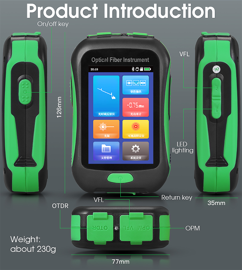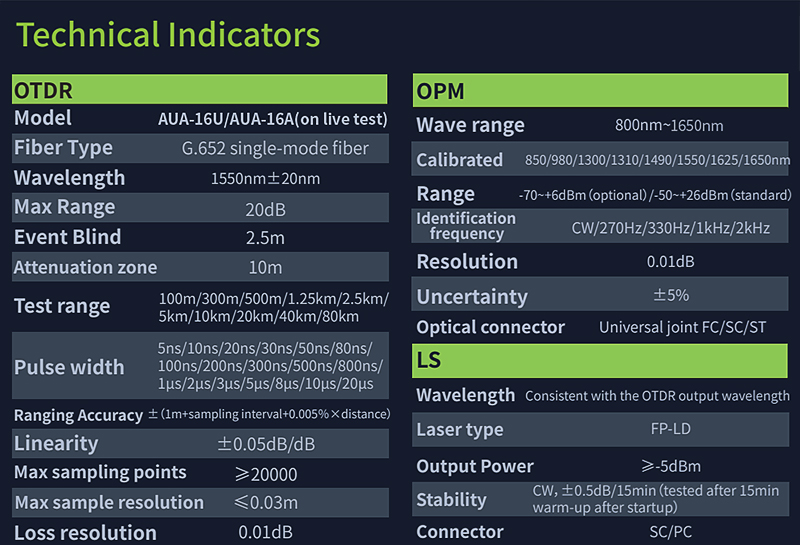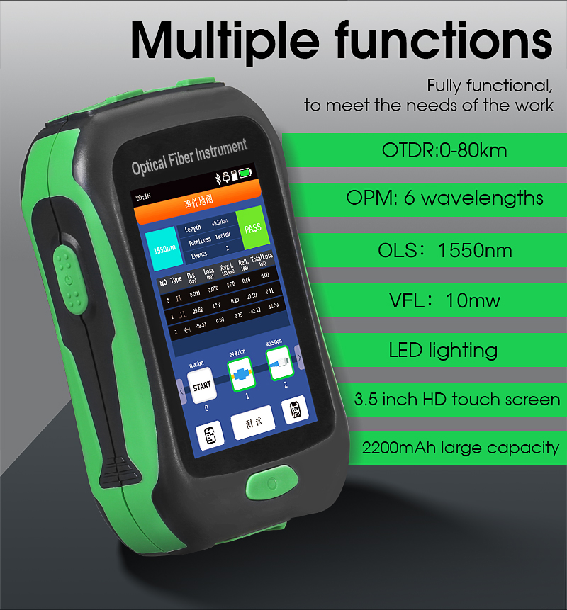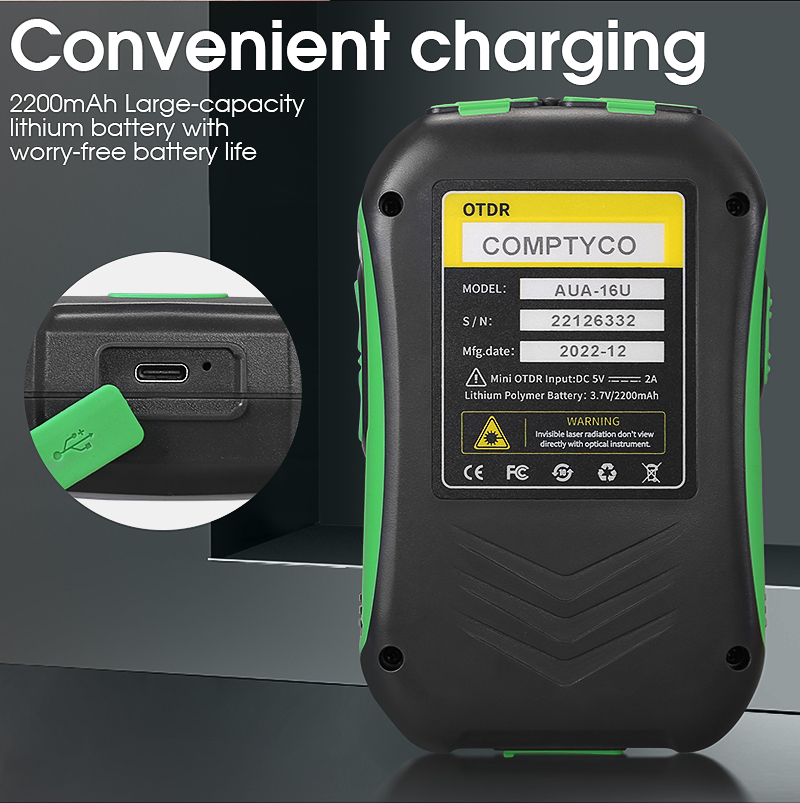 0 - 80KM 1550nm AUA-16U UPC Port Rechargeable OTDR Optical Time Domain Reflectometer with 3.5-inch HD Touch Screen