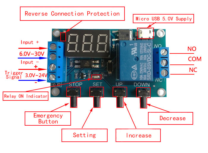 - Working Voltage: 6-30V supports micro USB 5.0V power supply