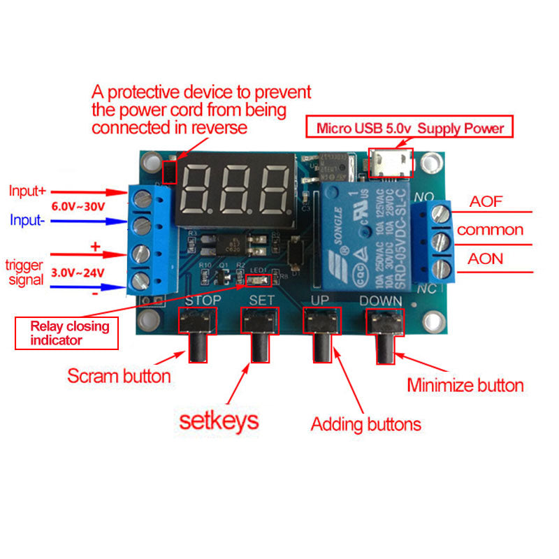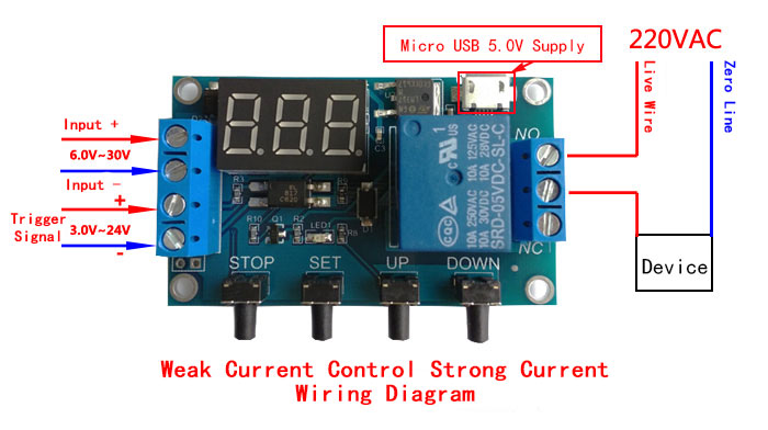 - Output Capability: can control devices within 30V 5A DC or within 220V 5A AC