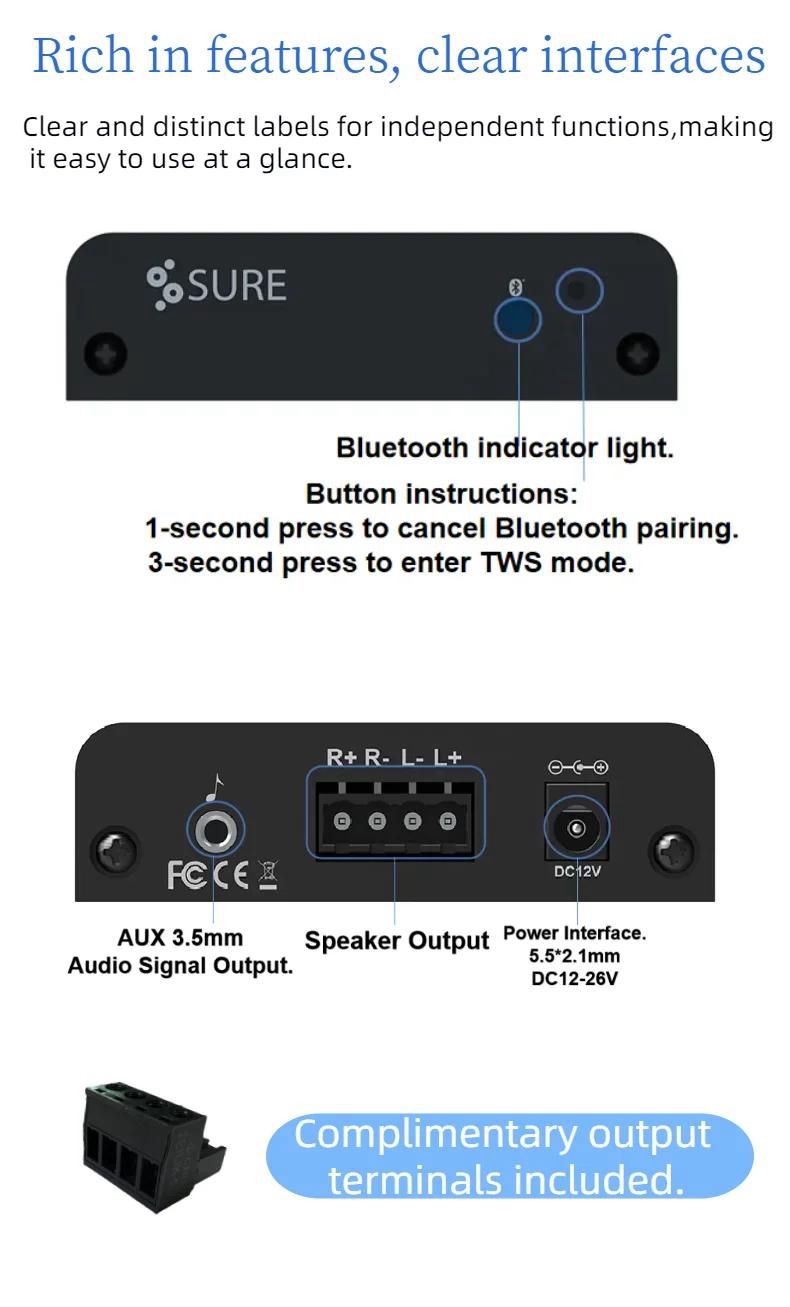 100W+100W Mini Bluetooth 5.0 Enthusiasts Level HiFi 2-Channel Digital Power Amplifier TDA7498 Audio Amplifier