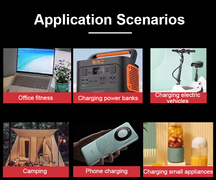 - Can be used for office fitness, charging power banks, electric vehicles, mobile phones and small appliances, and camping