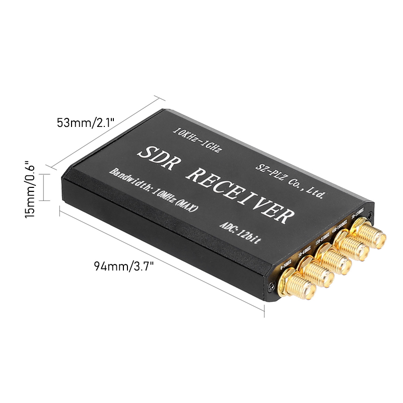 The effective frequency range is 10KHz to 1GHz, the ADC resolution is 12bit, and the whole segment is 10M real-time visual bandwidth (can monitor a 10M wide signal range in real time, such as 430-440MHz). It uses 0.5PPM TCXO to ensure accurate frequency.