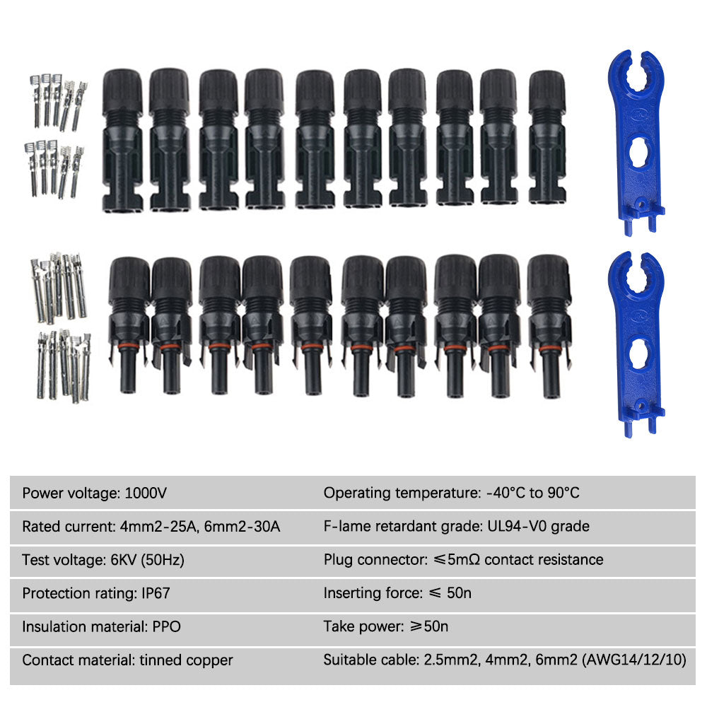 10Pairs Solar Connector Set with Wrench Male and Female Solar Connectors Waterproof Solar Panel Branch Series Connect for Solar