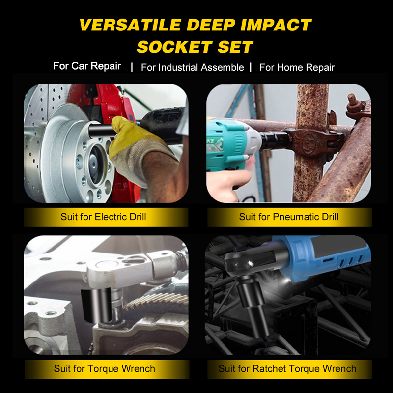 - Long Service Life: High strength tool steel sockets withstand more torque from impact tools and ensure longevity. And their surface are processed with electrophoresis treatment.