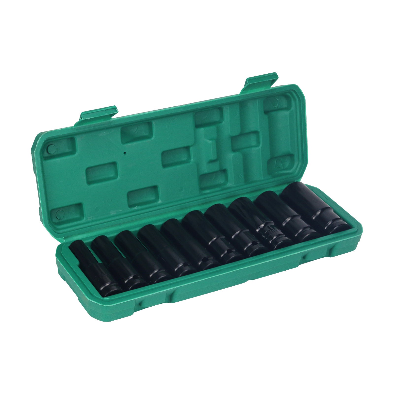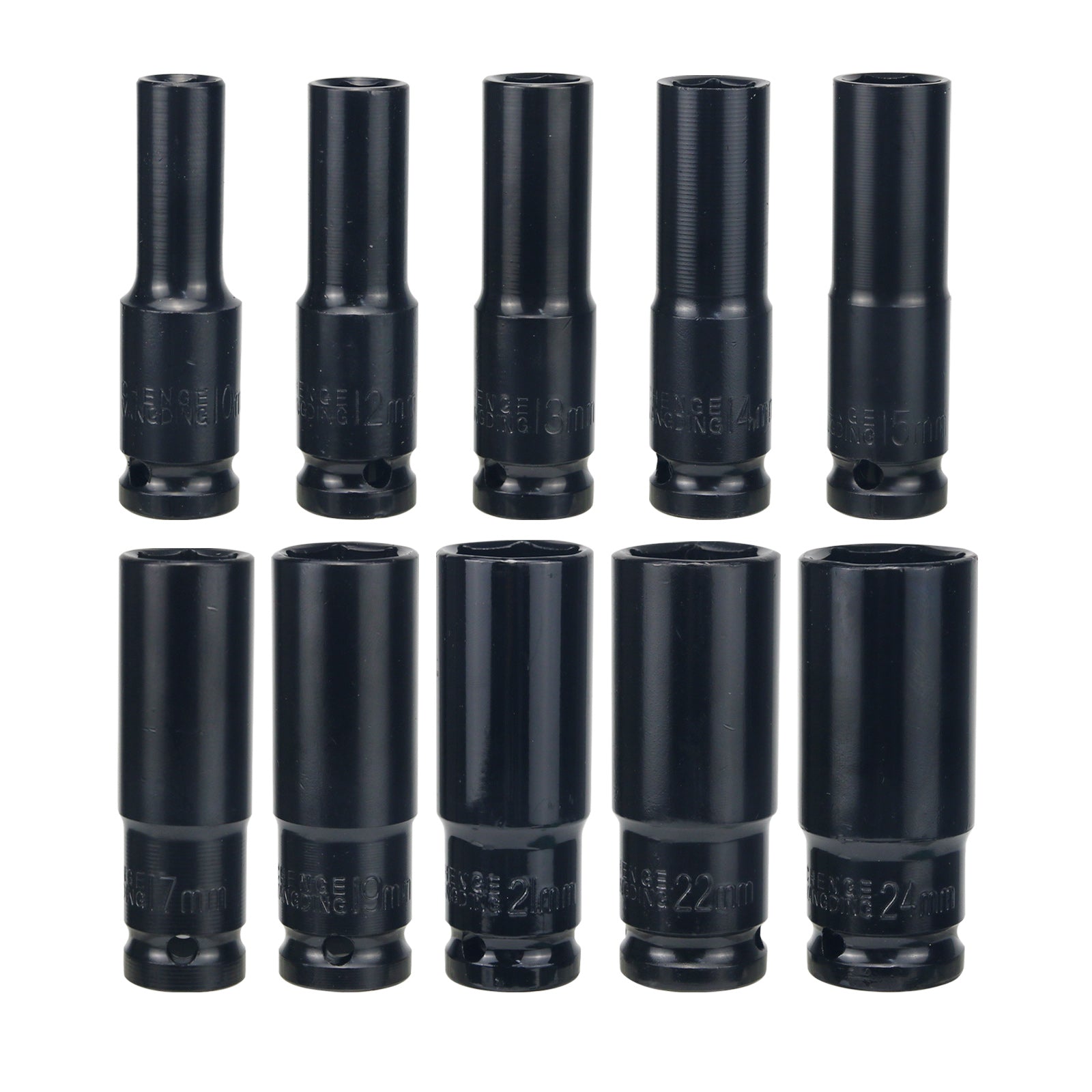 10PCS Impact Socket Set Metric Long Hex Socket Set with Plastic Storage Box for Electric Wrenches