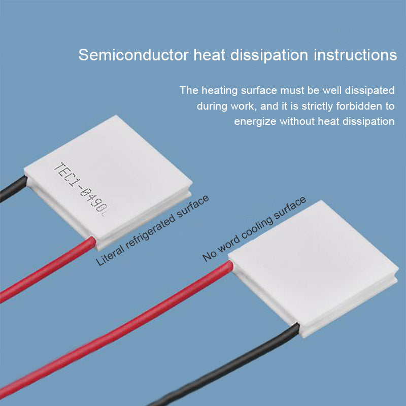 -The side with words is the cool side, the side without words is the heat dissipation side. When working, the heat dissipation side must be dissipated, and it is strictly forbidden to energize without heat dissipation.