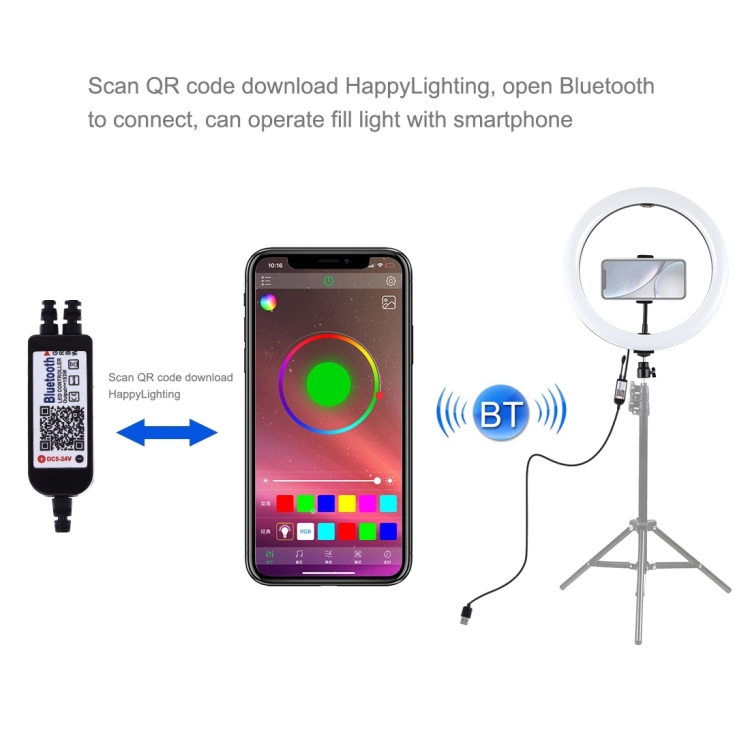 11.8" Ring Fill Light Dimmable Selfie Ring Light with Cellphone Holder RGBW Controller PU458B