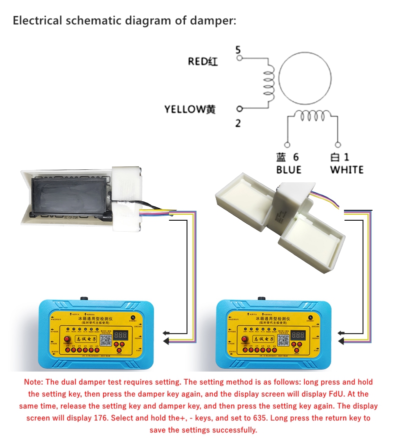 - Connect the damper detection line to the damper motor interface in red, yellow, blue, and white order as shown in the figure.