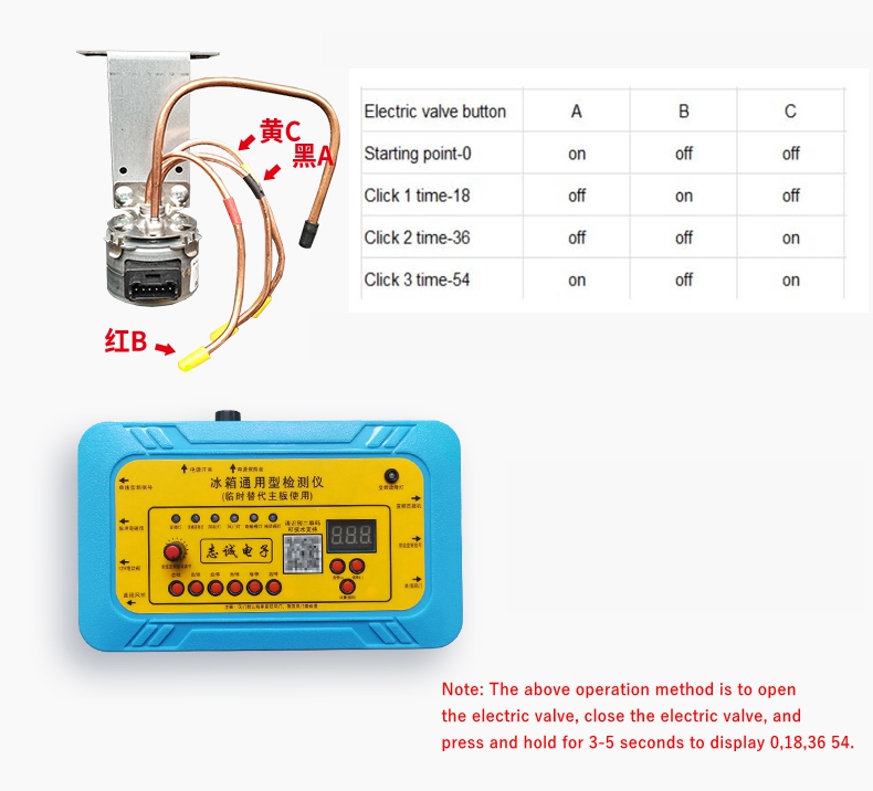 - Press the electric valve button for the second time, and the display screen shows - 36. At this time, the inlet is connected to port C. Press the electric valve button for the third time, and the display screen shows - 54. At this time, the inlet is connected to the BC port. After the above tests, it can be determined that the electric valve is in good condition if it switches normally. If there is no switching action of the electric valve, it indicates that the electric valve is faulty.
