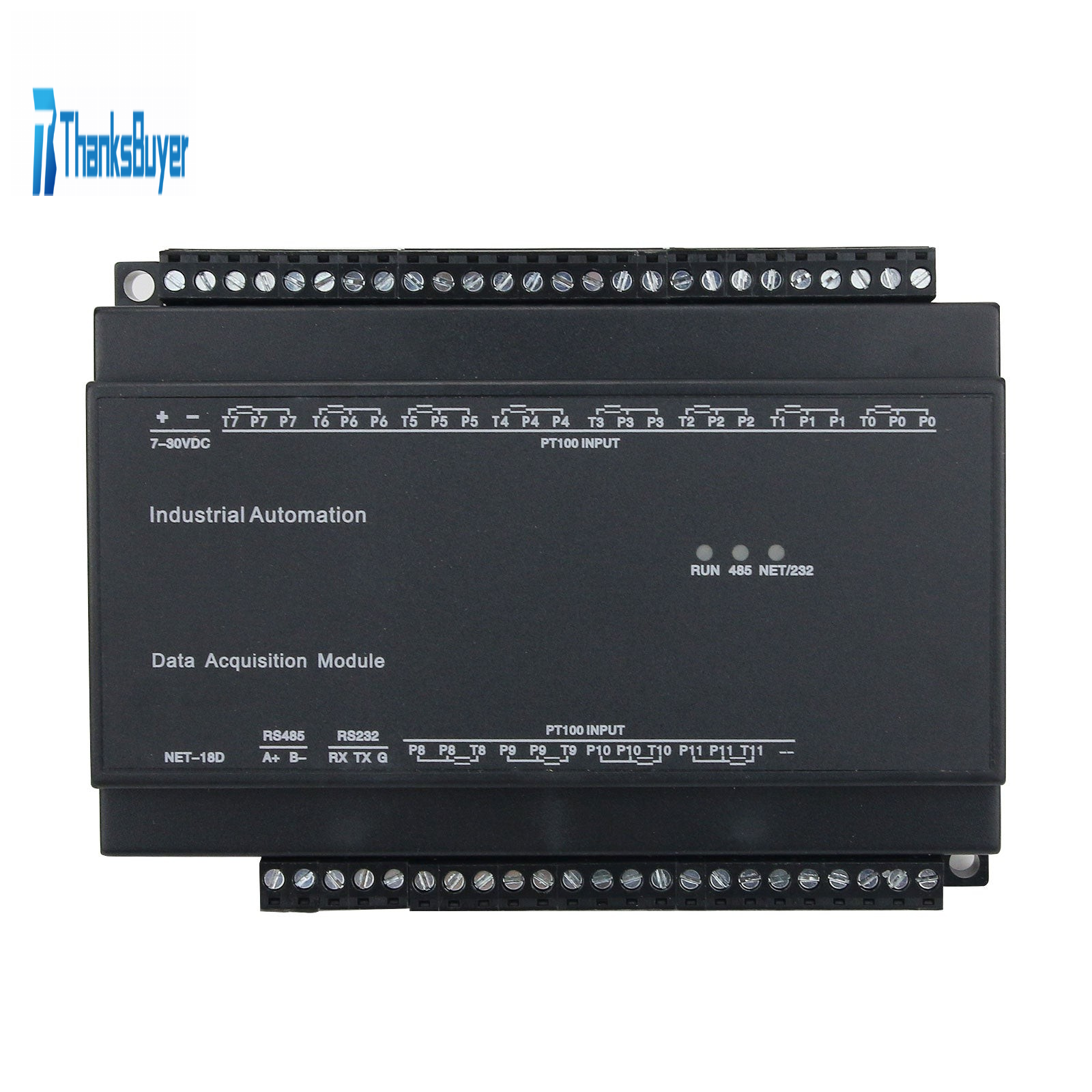 12PT100 + RS485 + RS232 Three-Wired Temperature Collector Data Acquisition Module RTU-318D