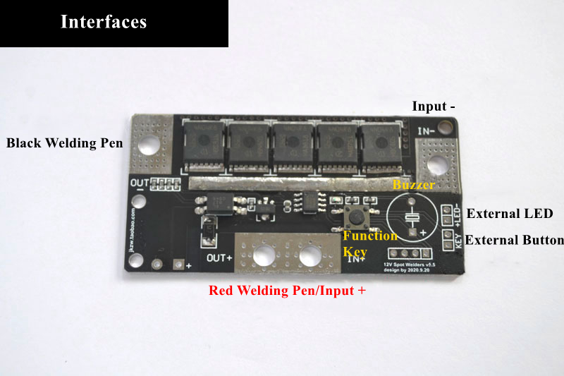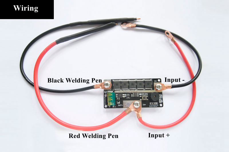 Users need to prepare their own 12V battery for power supply, and the welding current is about 100A~200A. It is suitable for common 0.1mm~0.15mm nickel-plated sheets. Please make sure that your battery can have a current greater than 100A, otherwise it fails to weld!