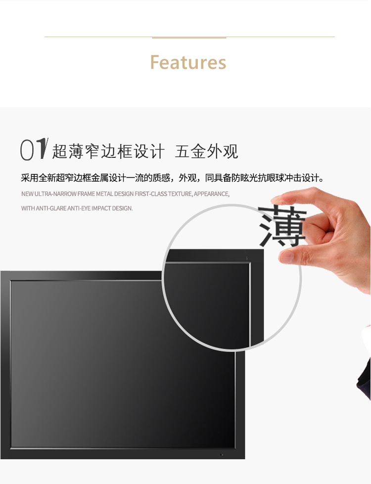 17inch Display Screen High Performance HD BNC Industrial LCD Monitor with Ultra-thin Frame and 178° Wide Viewing Angle