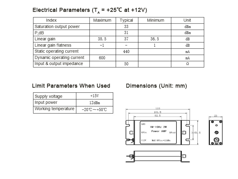 2) Before powering on, please ensure that the input and output of the product are reliably connected to 50-ohm loads;