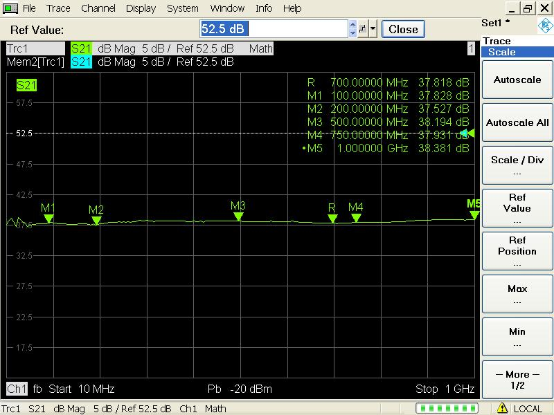 In the figure above, when the signal gain is small, the gain is basically around 37dB.