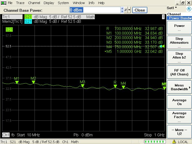 The figure below shows 15V, input 0DBm saturation power output, and the output power of all bands is greater than 32dBm.