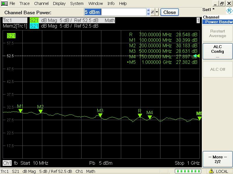 The figure below shows 12V, input 0DBm saturation power output, and the output power of all bands is greater than 30dBm.