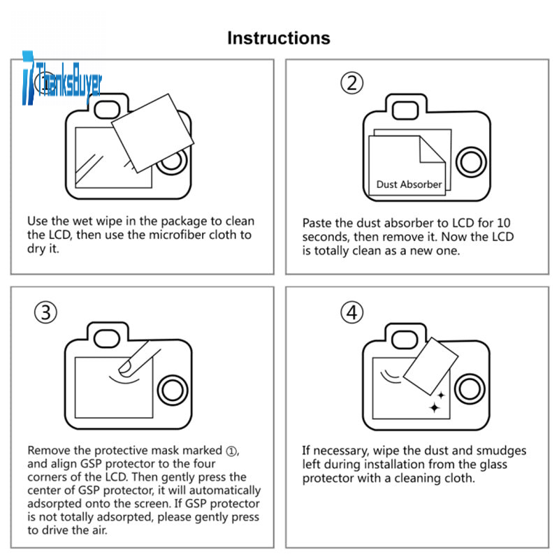 1. LCD panel and surrounding to be attached clearly digital camera with clean cloth.