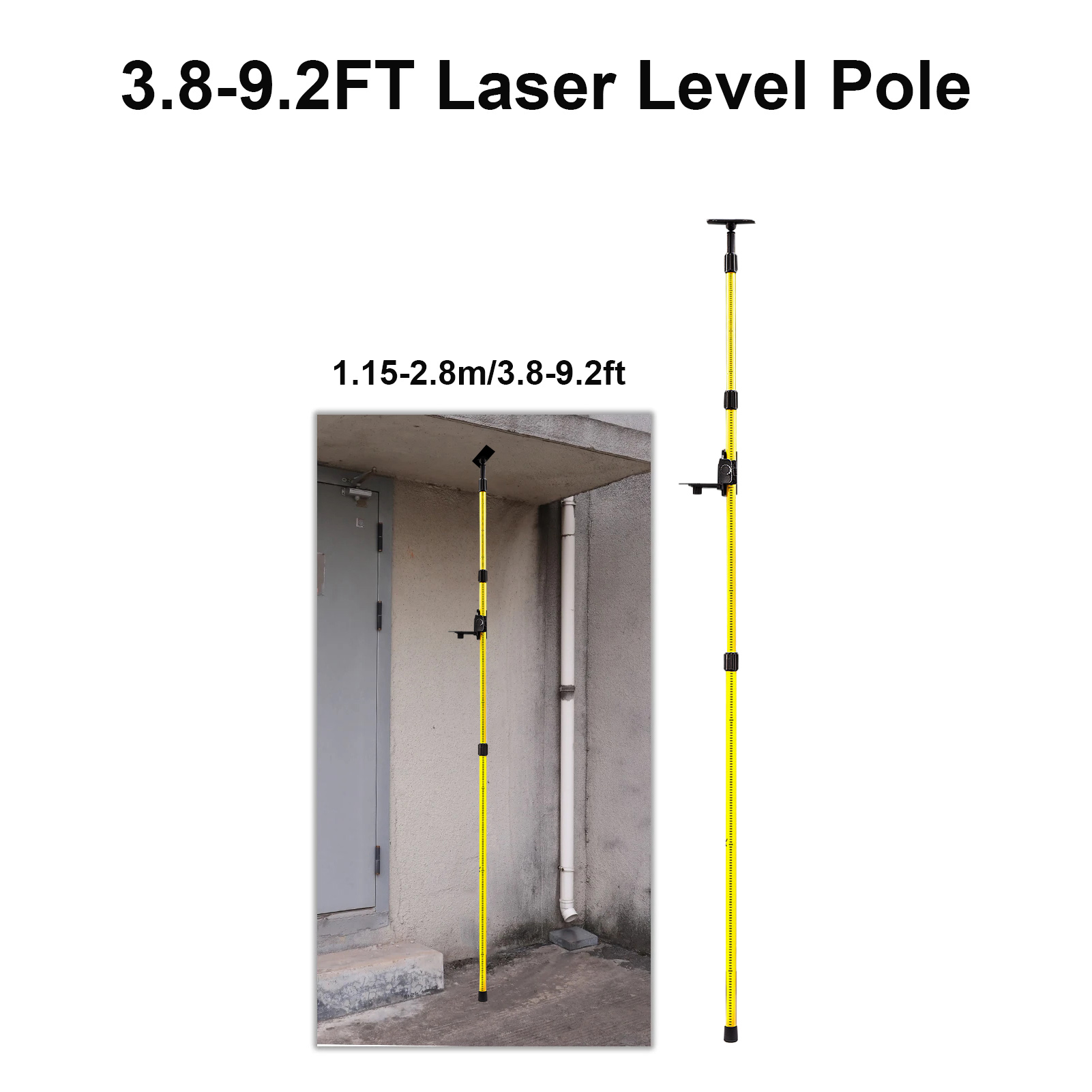 2.8M/9.2FT Laser Level Pole Mount Aluminum Telescopic Pole for Laser Level Comes with Storage Bag