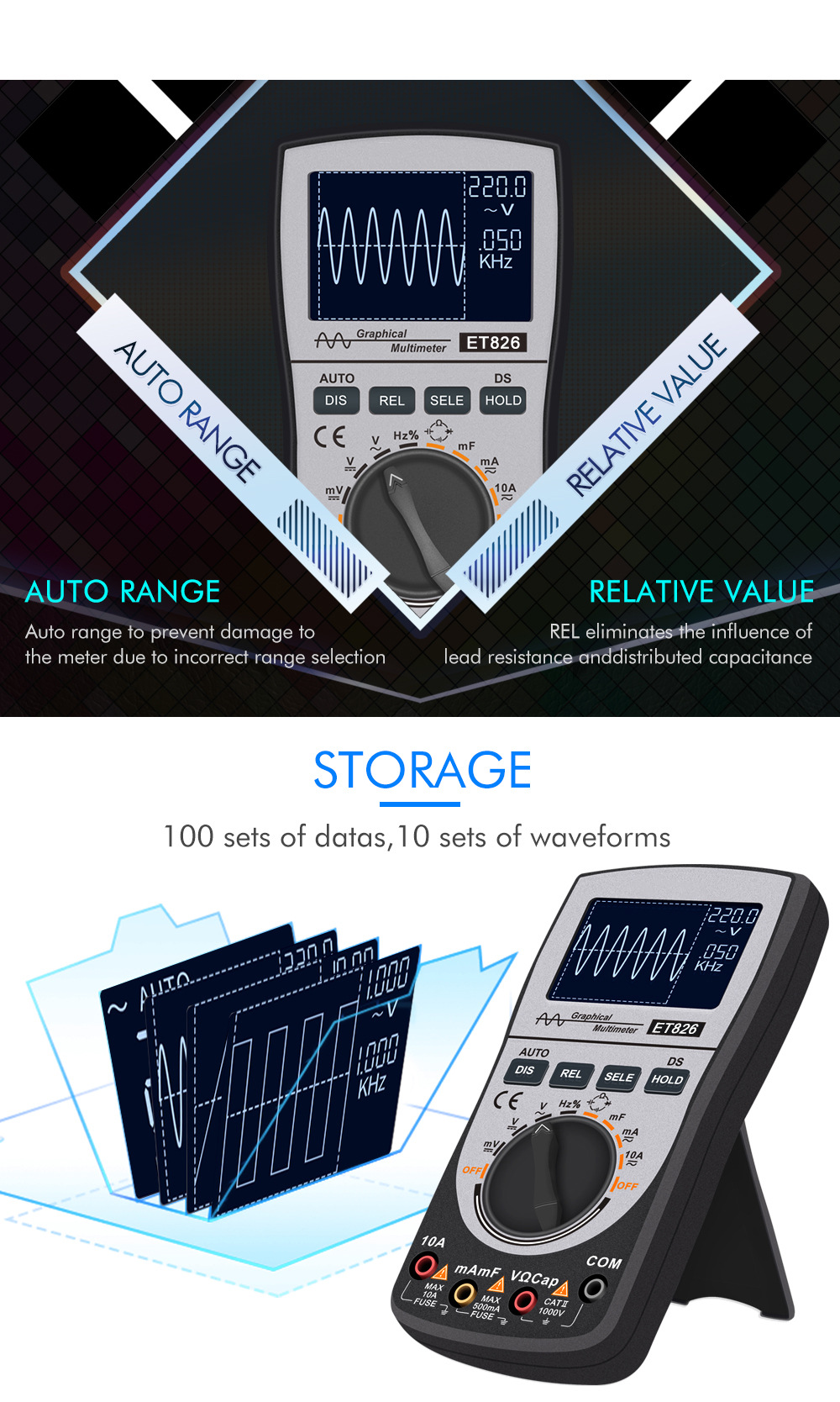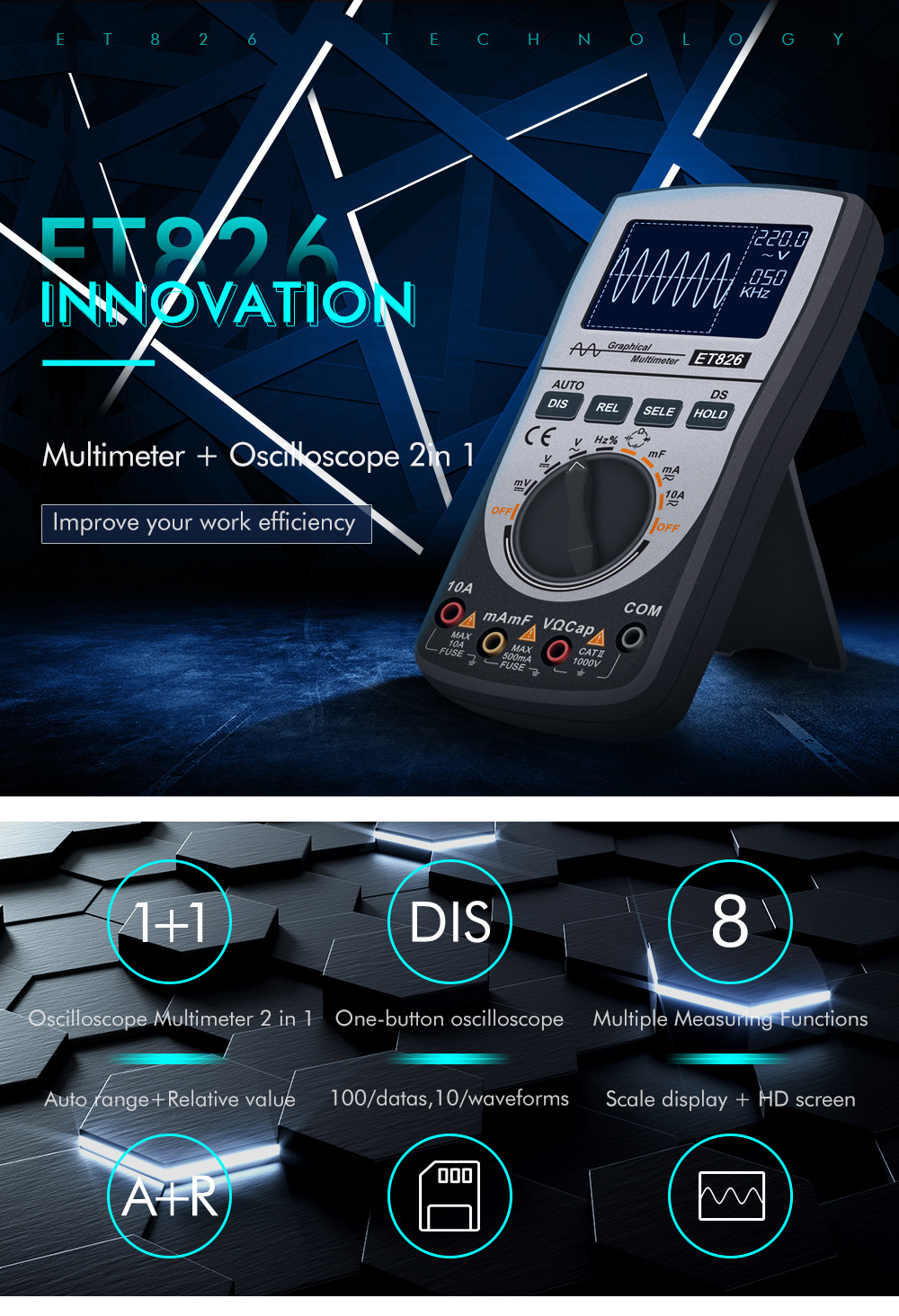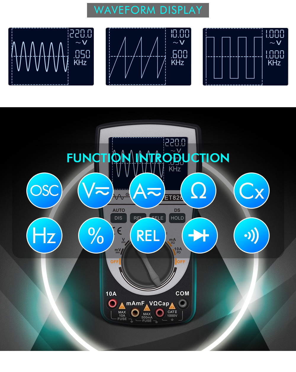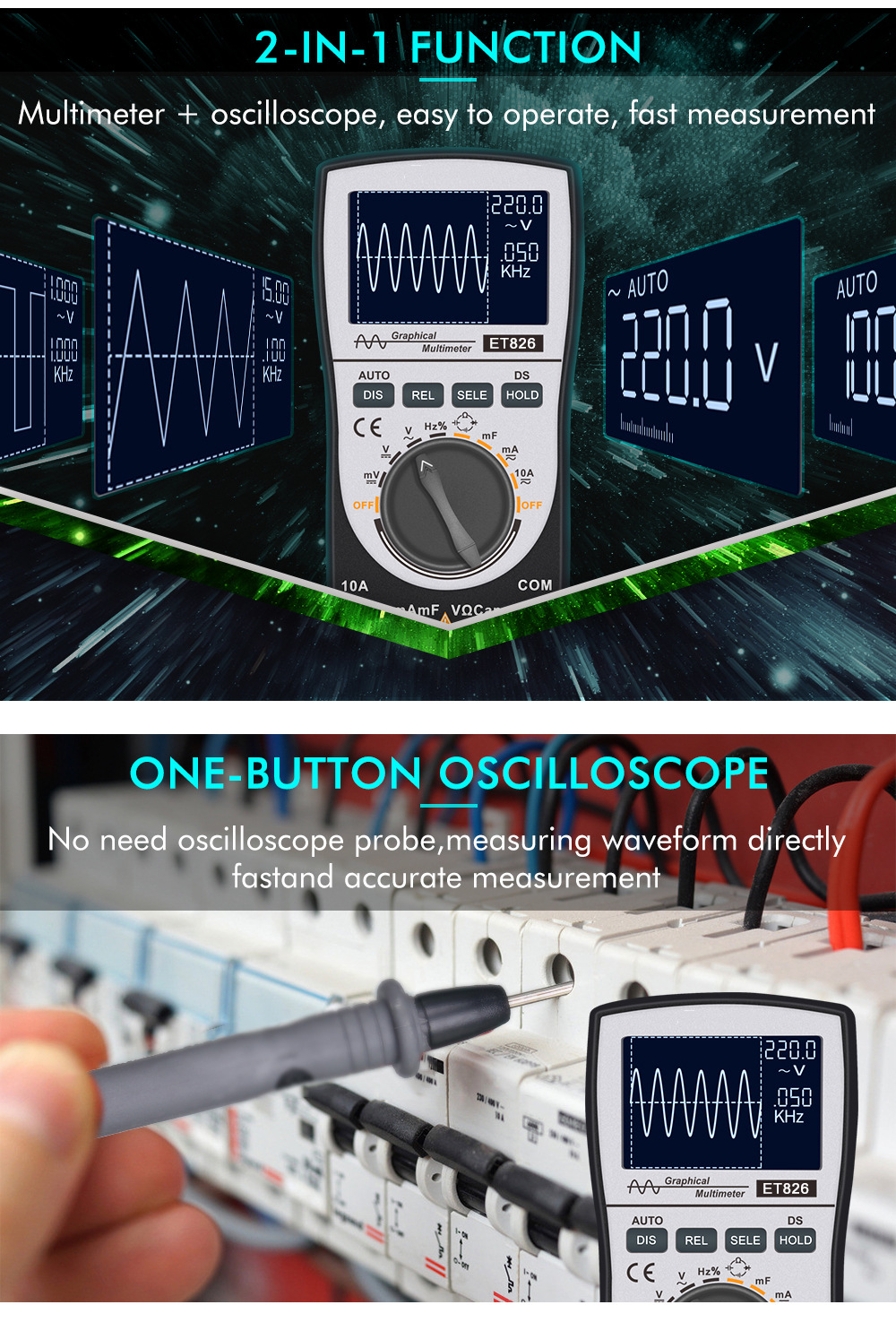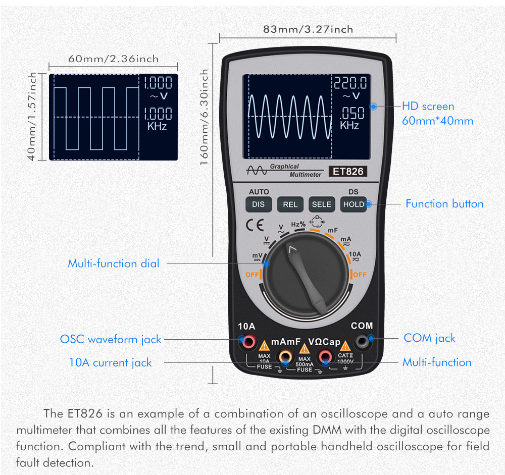 2-In-1 Graphical Multimeter Digital Oscilloscope with Color Screen Fast and Accurate Measurement