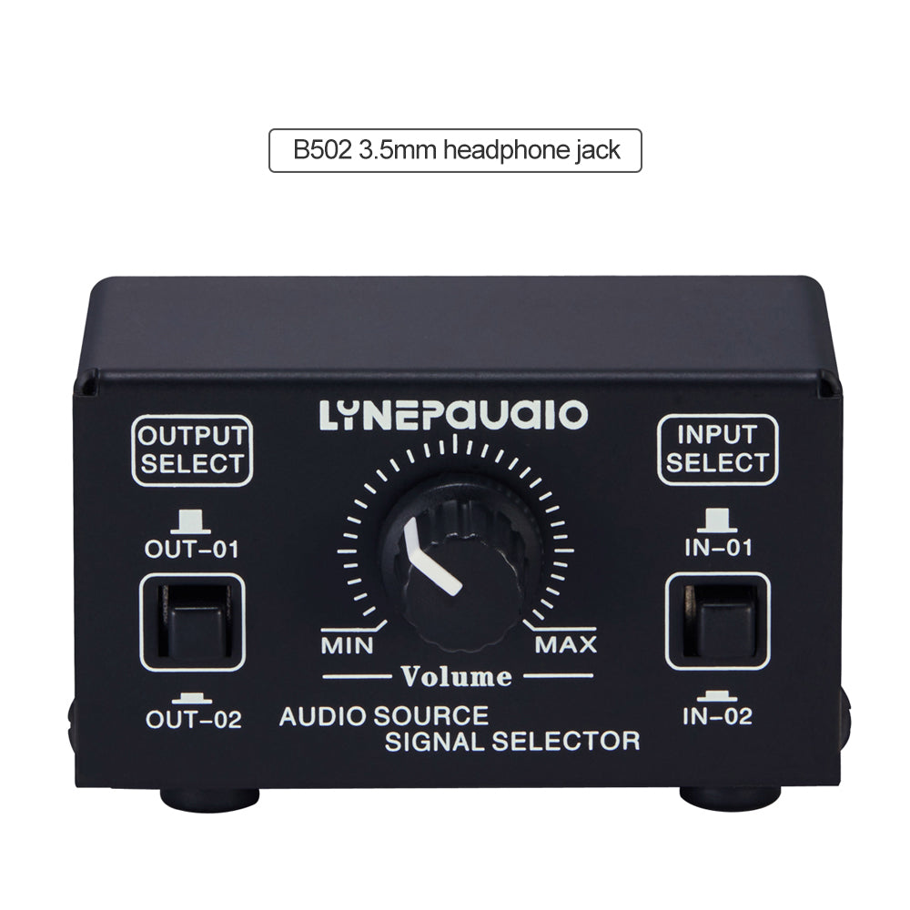 2 In 2 Out Audio Source Signal Selector Switcher Output Volume Adjustment 3.5mm Headphone Jack B502