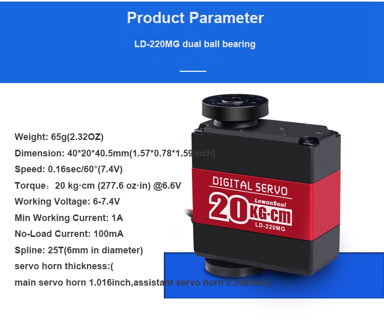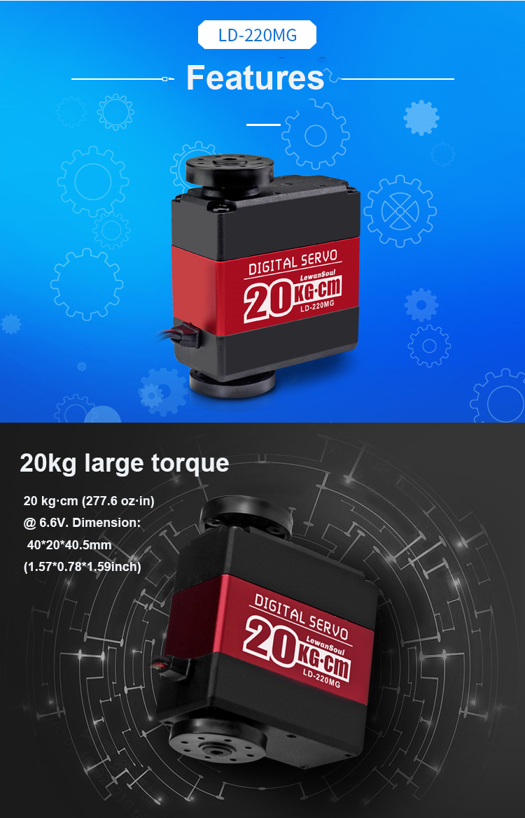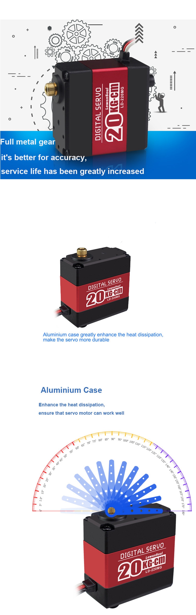 20kg.cm High Torque Digital Servo Metal Gear 180° for Manipulator Mechanical Robotic Arm LD-220MG