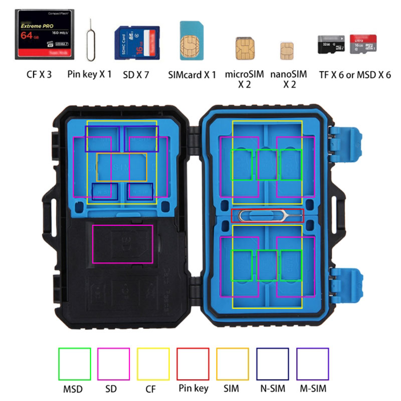 5. The case adopts a compact design, the two compartments both allow you store 1Standard SIM + 2Micro-SIM + 2Nano-SIM + 3CF + 7SD + 6TF + 1CARD PIN.