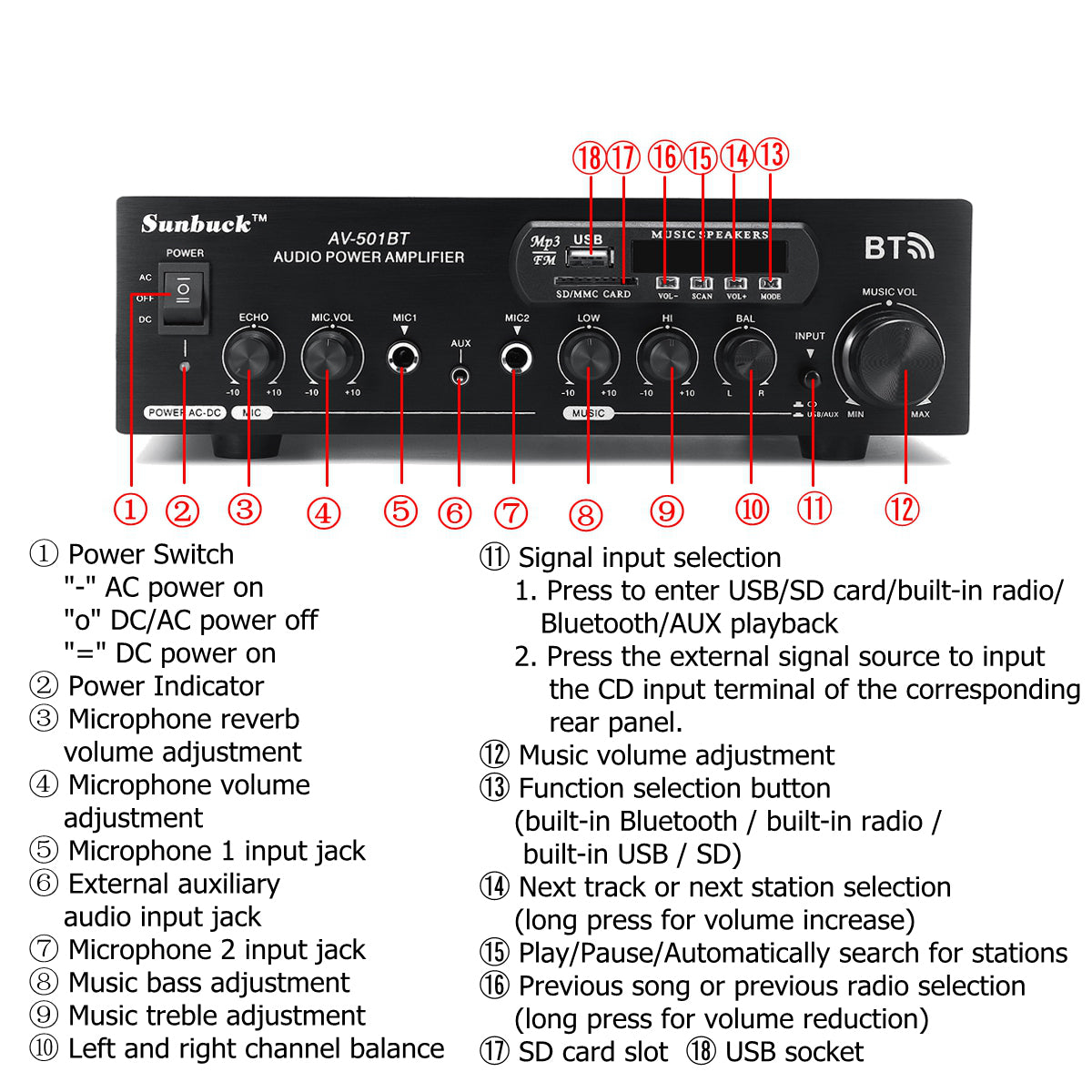 220V 12V Car Amplifier 300W+300W AV-MP326BT Professional Digital ECHO MIXER Home Amplifier Karaoke Bluetooth Amplifier
