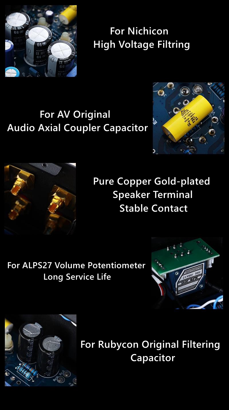 - Pure copper speaker output terminal, aluminum alloy shock absorber foot, transformer sealing to reduce vibration.
