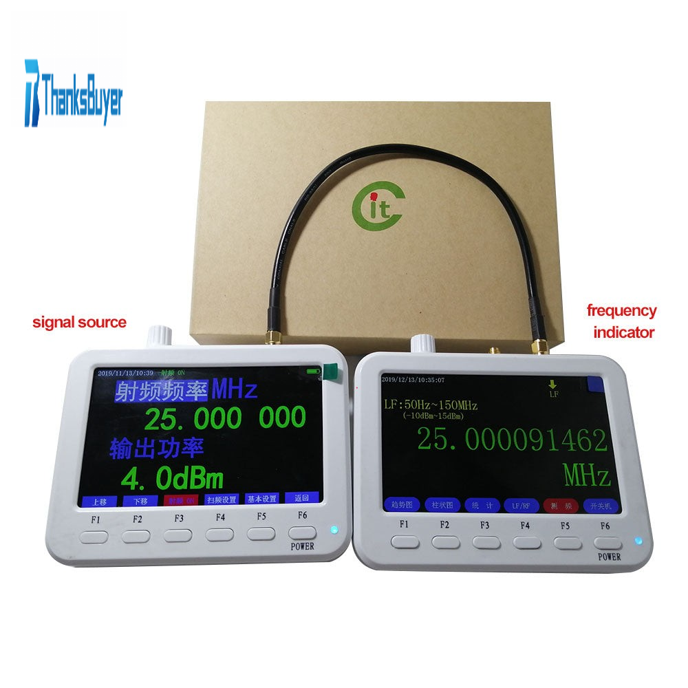 - Portable RF signal generator with a signal frequency range of 25MHz to 3GHz and a power dynamic range of -51.5dBm to 10dBm.