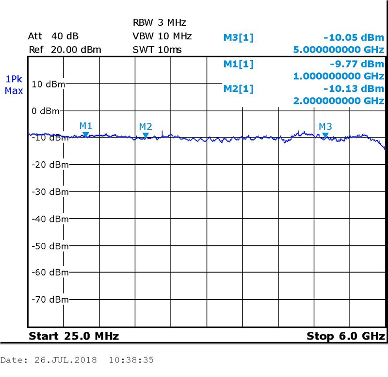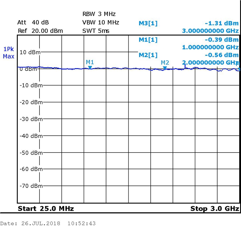 2. Output signal power range: -25dBm to + 10dBm (within 3G range) amplitude flatness of each frequency point, see the actual measurement curve for details;