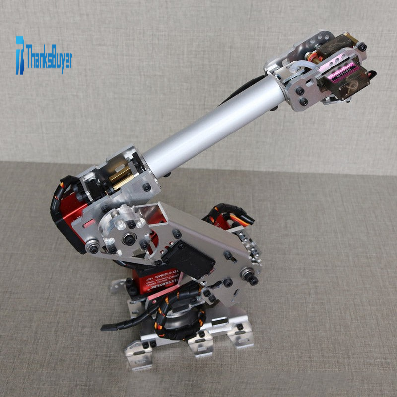 6 DOF mechanical arm (waist, arm, arm rotation, wrist, wrist rotation), all-metal mechanical arm, bottom joints are fixed with high-quality all-steel large bearings, and operation is more stable.