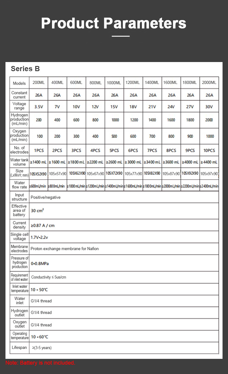- Hydrogen and oxygen separation: Safe and stable to use. The lifespan is 3-5 years