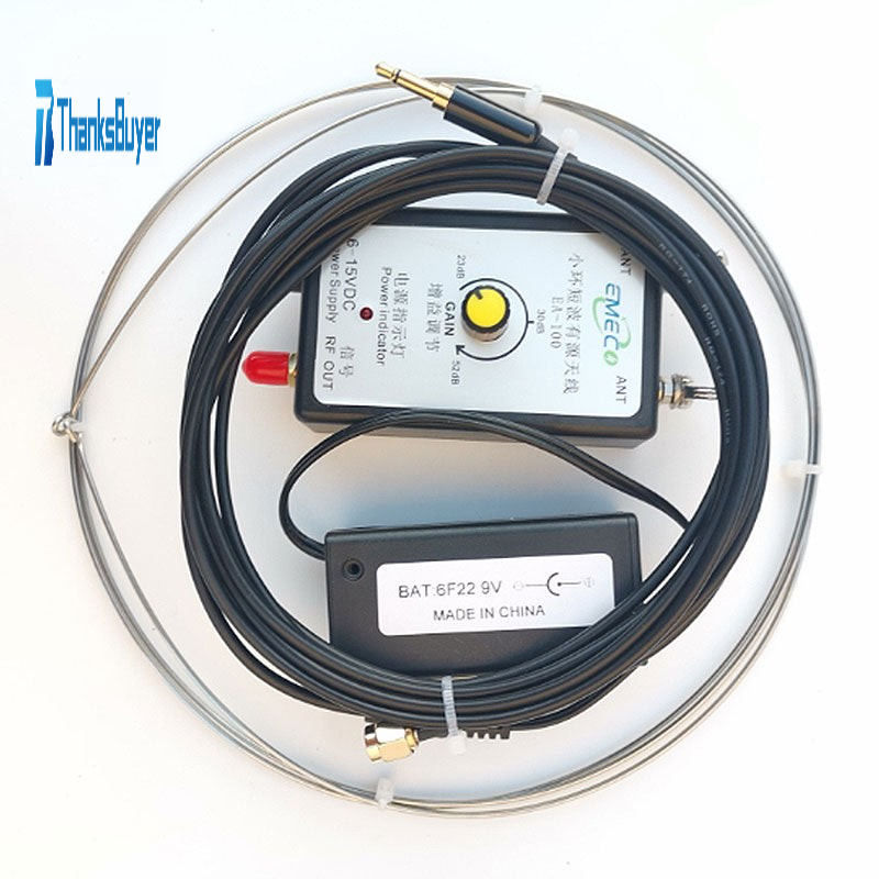 - Install the battery and SMA feeder, round the antenna ring with 2mm diameter and 60cm ring, and fix it in the twist angle screw, and insert the other end of the antenna into the external antenna port of the radio or the antenna input port of the SDR receiver.