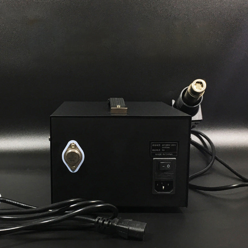 - The fan air flow is large and the poleless is adjustable. The soldering iron, the air gun temperature and the power supply voltage are displayed by the three-way display terminal LED.