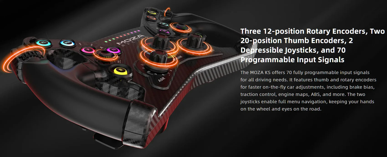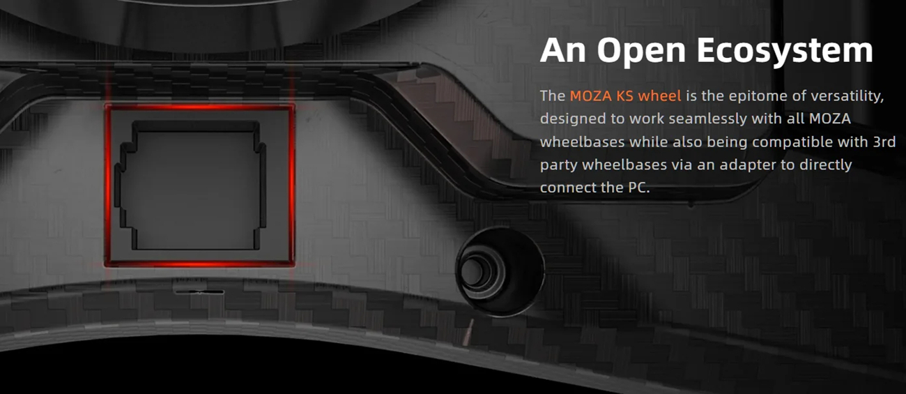 The KS steering wheel is compatible with all MOZA bases, and also compatible with 3rd Party Wheelbases via an adapter to directly connect the PC.