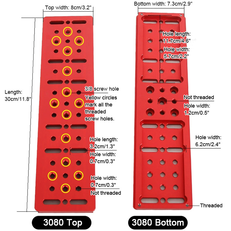 3080 (30cm x 8cm/11.8" x 3.2") Metal Dovetail Plate Dovetail Mounting Plate with 3/8 Screw Holes