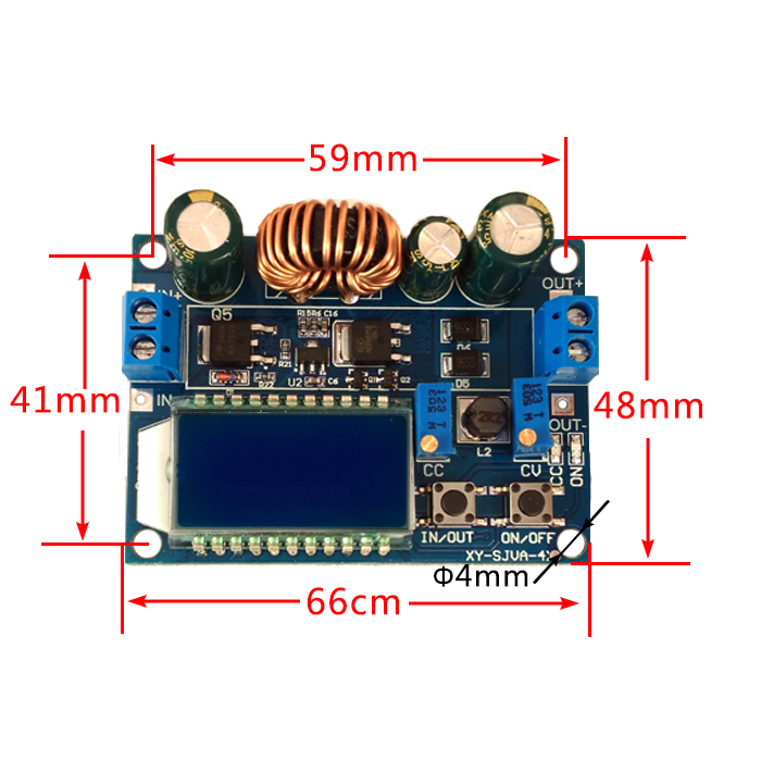 - Can step up and step down. Output voltage can be adjusted freely from 0.5-30V. Limit current 0-4A arbitrary adjustment